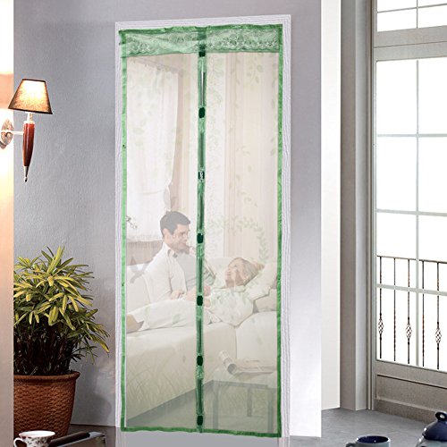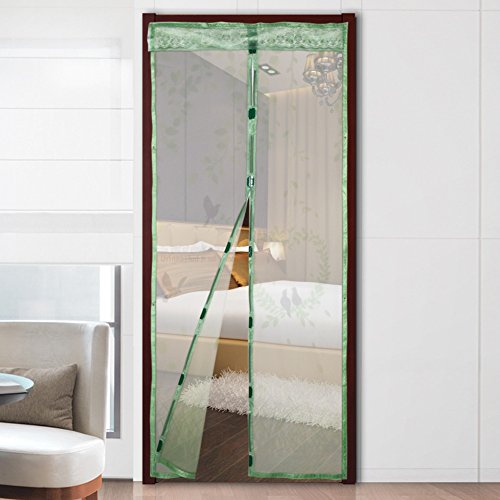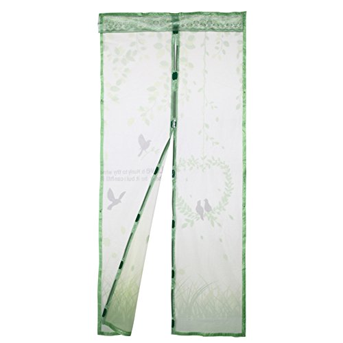 Demiawaking 210*90cm 自動式磁気カーテン 玄関網戸 防虫ネット 鳥と風景の柄 虫よけ 断熱 取付簡単 ソフト ガーゼ 折り畳み (グリーン)