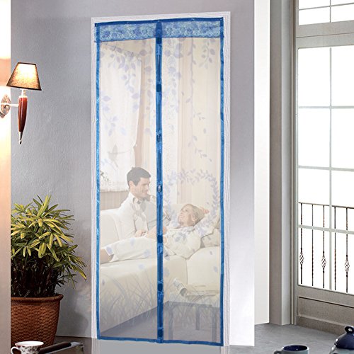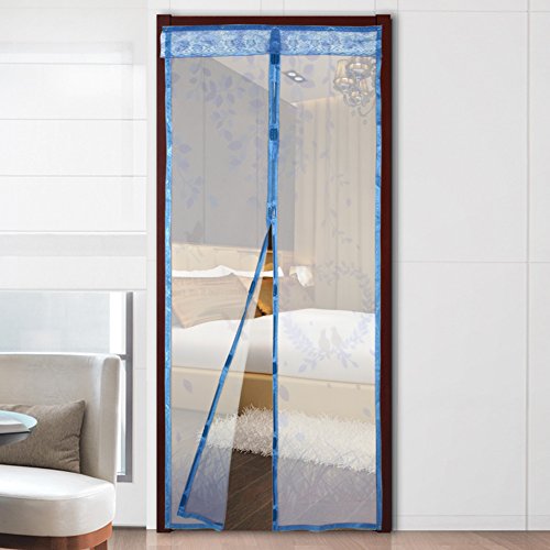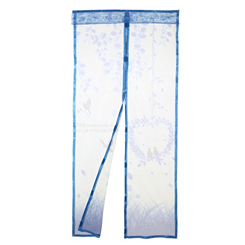 Demiawaking 210*90cm 自動式磁気カーテン 玄関網戸 防虫ネット 鳥と風景の柄 虫よけ 断熱 取付簡単 ソフト ガーゼ 折り畳み (ブルー)
