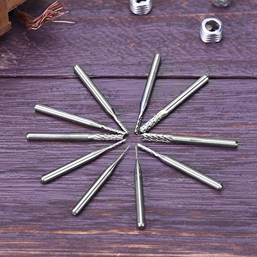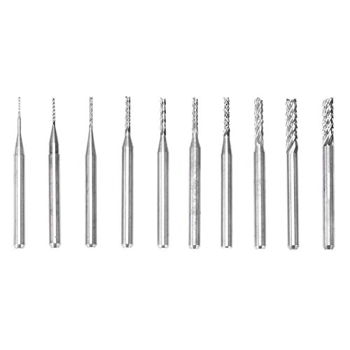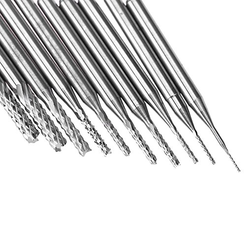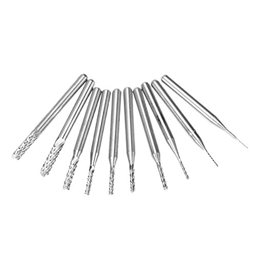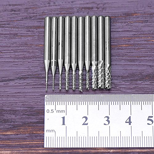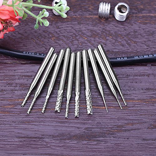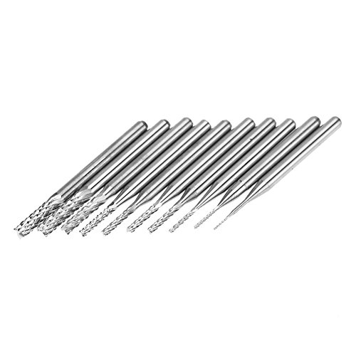Demiawaking 超硬 10本/セット カーバイド エンドミル 彫刻ビット ビッド 高速度 工具 切削 木工 研磨用 彫刻ビット 切削エッジ径(CED):0.5-3.175mm(0.5,0.8,1.0,1.5,1.6,1.8,2.0,2.5,3.0,3.175mm)