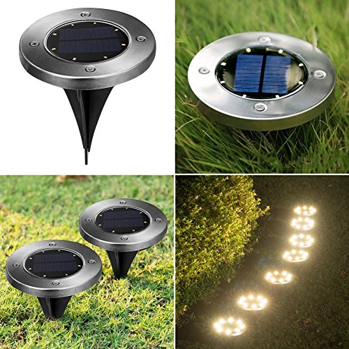 Demiawaking 8LEDソーラーライト 埋め込み式 防水ライト ガーデン、庭、芝生、公園に適うアウトドア用ライト ホワイト