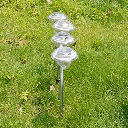 Demiawaking ソーラーガーデンライト LED おしゃれ ダイヤモンド型 4本セット ホワイト