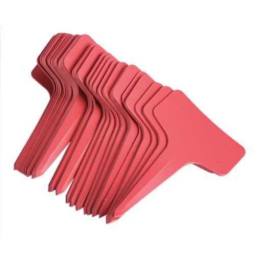 Demiawaking T型ラベル 園芸用ラベル 100枚入り プラスチック 腐ってない クリアしやすい ガーデンラベル (レッド)