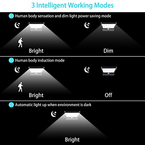 - ★【三つモード】①人感センサー(明るいライト)+DIMライト②人感センサー明るいライト)+オフパタン③暗くになると、常点灯。ニーズによって、適合なモードを選択ください