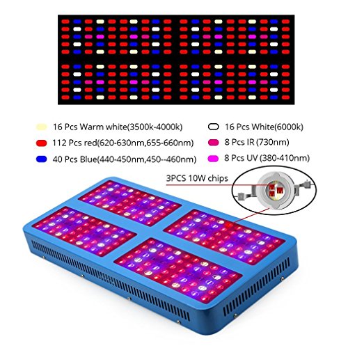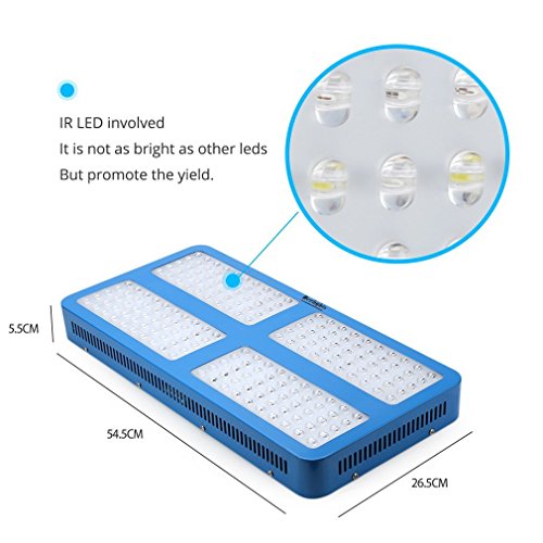 - スペクトラム:200LED-112赤,40青,16オレンジ,16白,8UV,8IR;波長選択:赤(630nm-660nm)、青(430nm-470nm)、オレンジ(590nm-610nm)ホワイト:6500K; UV:730nm; IR:380nm。