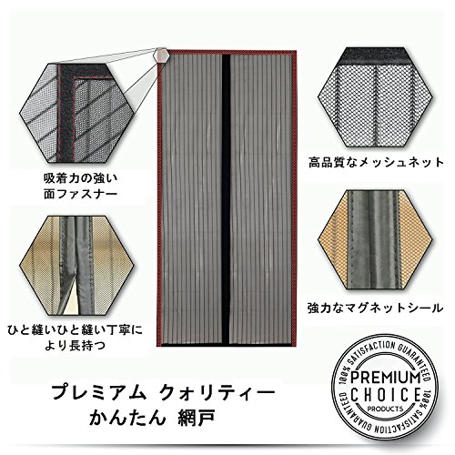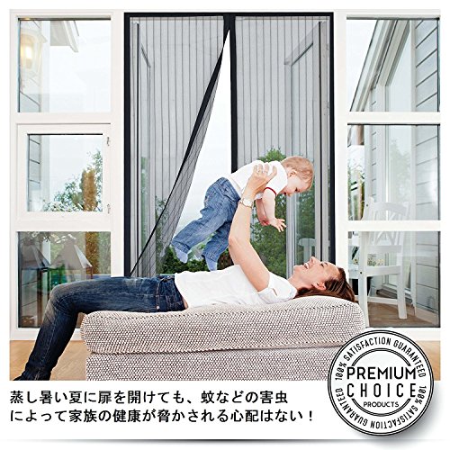 DeroTeno マグネット付き簡単網戸 (玄関用・外開きドア用) 取り付けが超簡単。爽やかな風を取り込んで、蚊などの虫をシャットアウト。 (100cm×210cm)
