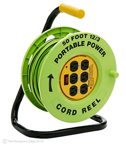 Designers Edge E238 6-Outlet Retractable Extension Cord with 12/3 Grounded Cord, Green, 50-Foot. Will convert most extension cords into 6-outlet power block. Frame is made of metal and the wheel of sturdy polymer-plastic. Provides 6 outlets with circuit breaker, lighted power On/Off switch. Extension cord meant for use with professionals. Cord included is a 50-foot 12 gauge safety stripe cord, long enough to reach most places in your work area. Need a really long power strip? this will turn one outlet into 6-outlets on a wheel. Highly visible reel and cord, easy to locate. UL and CUL Listed - industry standards for safety and longevity. TOLL FREE HOTLINE, 1-800-561-4321. If you have immediate questions about application, installation, troubleshooting, or a damaged component, please call CCI Consumer product hotline at 1-800-561-4321 or email questions to: CCI.ConsumerSupport@southwire.com. The Designers Edge (R) brand is a registered trademark of Coleman Cable Inc.