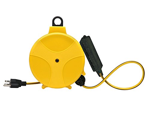 The 3-oulet tap is lighted to show there is power. Designers Edge E315 Retractable Extension Cord Reel with Triple Tap, Yellow, 20-Foot. Use when you need an extension cord and power supply, but don't want to travel far. Power block has 3-outlets to allow use with multiple appliances at once. Grounded plug provides safety and convenience. Retractable 20-foot extension cord with 3-outlet strip on the end. Features loop at top of unit, allowing you to hang unit from ceiling, new and existing hooks, or other areas you need access to power. Heavy duty plastic construction, durable enough to withstand regular indoor use. Bright yellow color makes portable cord reel easy to locate. Etl listed in us and ca. TOLL FREE HOTLINE, 1-800-561-4321. If you have immediate questions about application, installation, troubleshooting, or a damaged component, please call CCI Consumer product hotline at 1-800-561-4321 or email questions to: CCI.ConsumerSupport@southwire.com. The Designers Edge (R) brand is a registered trademark of Coleman Cable Inc.