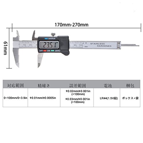 Dewel 4インチノギス 物差し 測定用 電子LCDデジタル キャリパーステンレス 外径 内径 段差 深さ 測定範囲0.01-100mm