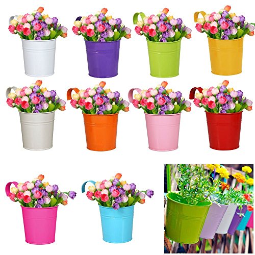 Dewel 金属製植木鉢 10点セット 壁掛けフラワーポット ガーデニング フック付き おしゃれ 雰囲気作り 実用 飾り 家庭菜園・ベランダ菜園用 (10色セット)