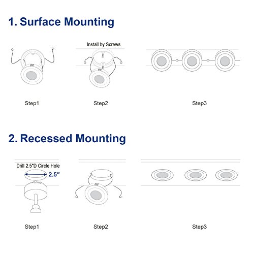 [カウンタの照明の取り付けにはネジがすべてのアクセサリーを使用することもできますが、中小でサーフェスマウントまたはドリル2.5 " Dパイロット穴の凹型穴が空いています。設計された特別の両側に接続している1 ftケーブル6フィートのパックライト、電源コードと2延長コード( 3.3 FT )使用はるかに柔軟に展開すると、ライトをします。簡単きれいに非表示になり、あなたの台所でエレガント。