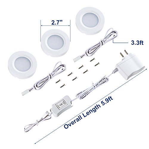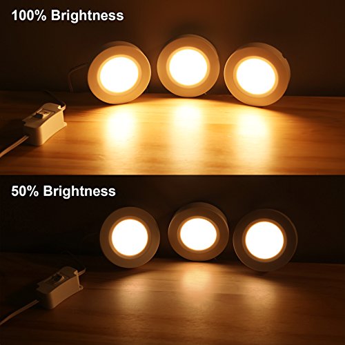 dewenwils調光機能付きLEDパックライト3000 K 6 W下キャビネット照明Recessedまたはサーフェスマウントforキッチンカウンター棚ショーケース、セットの3