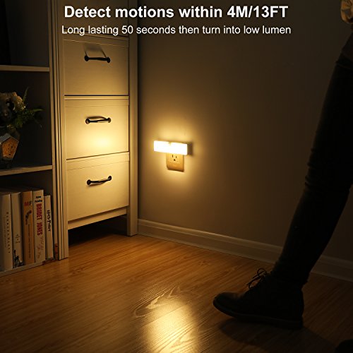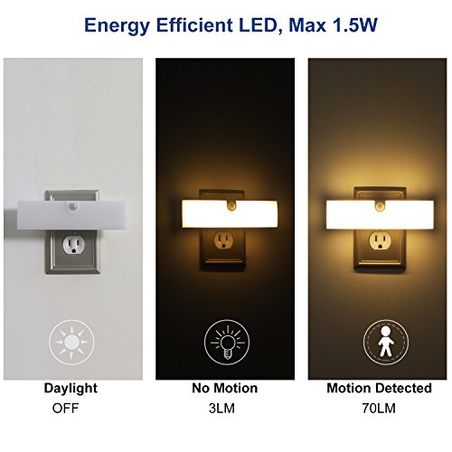 dewenwils 70ルーメンプラグin LED夜間ライトモーションセンサー、暖かいホワイト夜間用バスルーム廊下キッチンガレージ