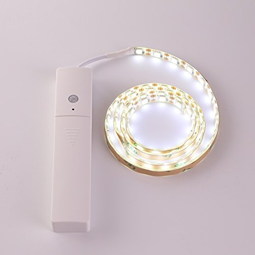 Dewinモーションセンサーライト – 新しいPIRモーションセンサーLEDストリップライト、ワイヤレスバッテリーPowered寝室クローゼットランプ、ホワイト