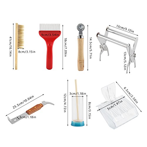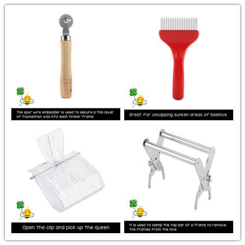 - パッケージは以下を含みます:1*養蜂用ブラシ、 1*蜜蓋かき器、1*クイーンキャッチャー、1*ハイブツール、1*マーキングカップ、1*ビーハイブフレームホルダー、1*歯車埋線器。