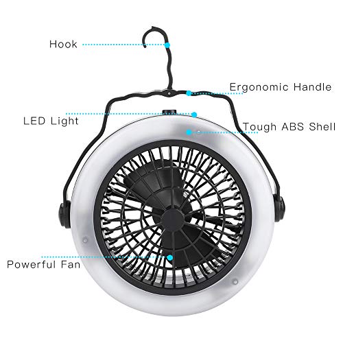 2-in-1デザイン:テントライトと天井ファン。 アウトドアキャンプ、ハイキング、バックパッキング、旅行、冒険などに便利です。