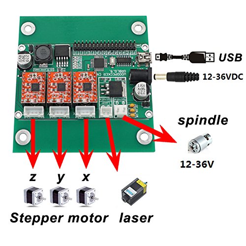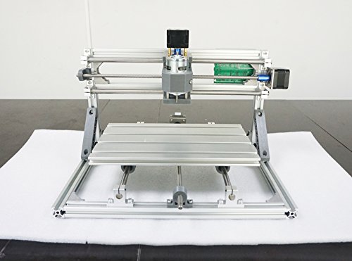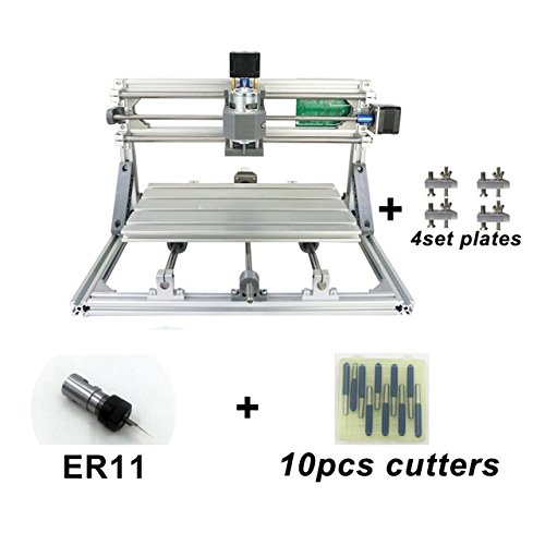 Technical Specifications: Working area: 30cm x 18cm x 4cm / 11.8" x 7" x 1.57"; Frame size: 33x40x24cm; Mesa: 30x18cm; Spindle: 775 spindle motor (12-36V) 24V: 7000r/min, 36V; Spindle Diameter: 45mm; Spindle Chuck: ER11; Step motor: 1.3A, 0.25N.m; Screw: T8 T-screw stainless steel Lead Screw diameter 8mm; Power supply: 24V 5.6A; Software: Grbl; Supported system: Windows XP, 7, 8, 10 (Do not support Mac); Drill bits: tip: 0.1mm ,20 degree , diameter: 3.175mm. Package includes 10pc; Laser: Support 500mw 405nm,12v / 2500mw 400nm,12v / 5500mw 450nm,12v (NOT INCLUDED); Processing materials: Can engrave: Plastic, Wood, Acrylic, PVC, PCB or similar materials.; Can not engrave or process Metals. Check out our 2417 model for Metal processing.;