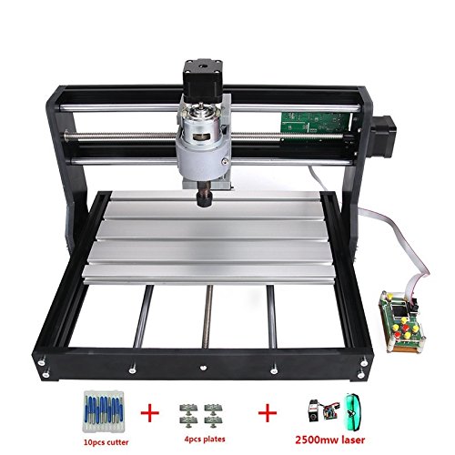 Technical specifications:; Working area: 30cm x 18cm x 4.5cm / 11.8" x 7" x 1.7"; Frame Size: 33 x 40x 24cm / 12.9" x 15.7" x 9.4"; Spindle: 775 Spindle Motor (12-36V) 24V: 10000r/min; Spindle Chuck: Regular; Stepper Motor: Fuselage Length 34mm,Current 1.33A, 12v.Torque 0.25N/M; Power Supply: 24V 5.6A; Software: Grbl Controller; Supported System: Windows (Does not support Mac); Drill Bits: ; 10pc included; Tip: 0.1mm; Angle: 20 degrees; Diameter: 3.175mm; Clamps: ; 4 Pcs included; Hold the thickness of 0-30mm ; Size: 50 * 20 * 3 (Length * Width * Thickness); Inner slot width: 6mm; Processing materials:; Can engrave: Plastic, wood, acrylic, PVC, PCB or similar materials.; Can not engrave or process Metals.;Laser: 2500mW 450nm, 12V;
