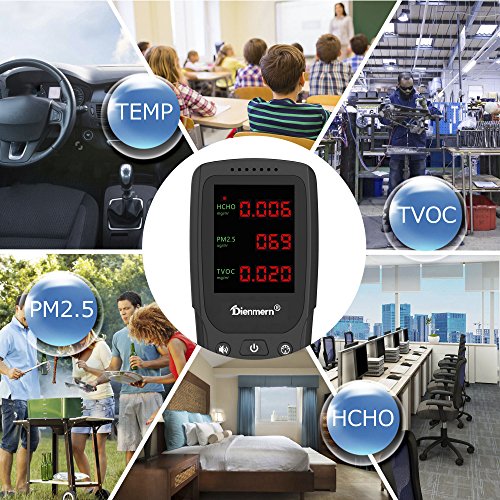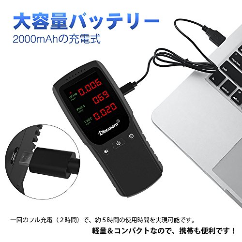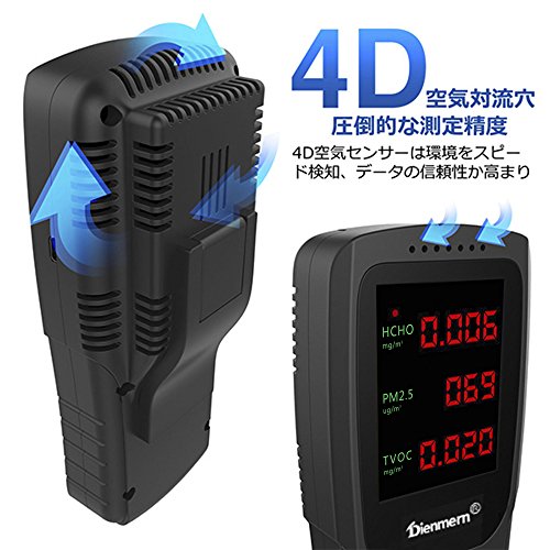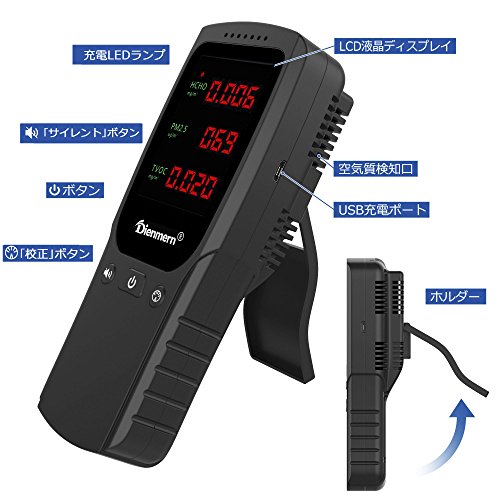 Dienmern 空気汚染測定器 pm2.5 測定器 HCHOホルムアルデヒド 検知 TVOCテスター 空気質測定器 LCD画面表示 高精度 空気質指数モニター コンパクト 軽量 USB充電式 エア検知器 pm2.5 花粉対応【正規品】【一年保証】