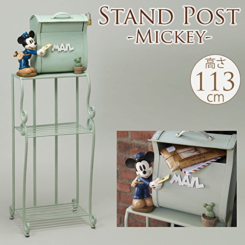 Disney スタンド一体型ポスト ミッキーの郵便配達 スタンドポスト デザイン 郵便受け 棚付き ラック ガーデン ガーデニング エクステリア