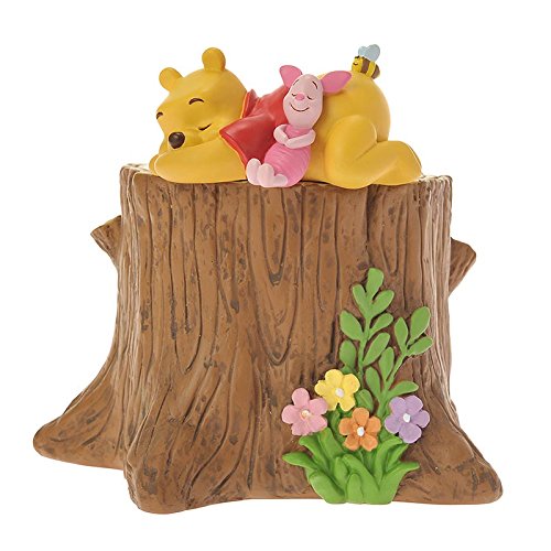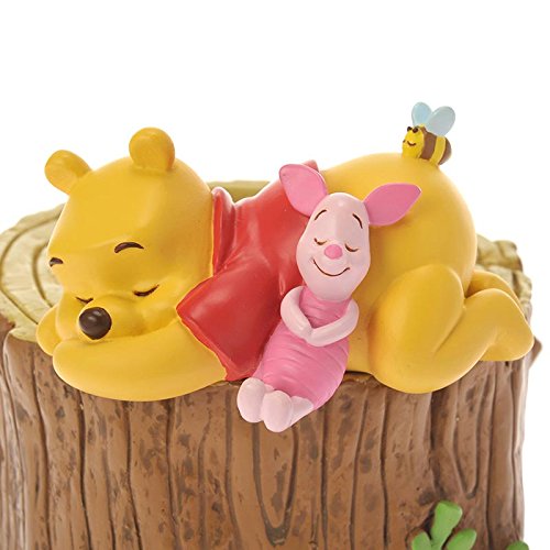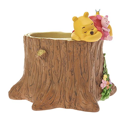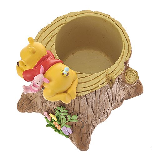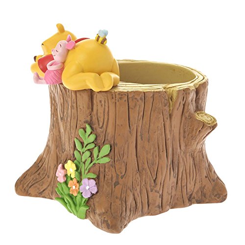 切り株の上でスヤスヤ眠るプーさんとピグレット。寄り添うふたりの姿は愛らしさ満点♪お気に入りのグリーンを飾れば、お部屋に春ムードが漂います。植木鉢のほか小物入れとして使ってもGood!春のお部屋づくりにぜひ♪