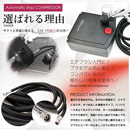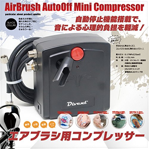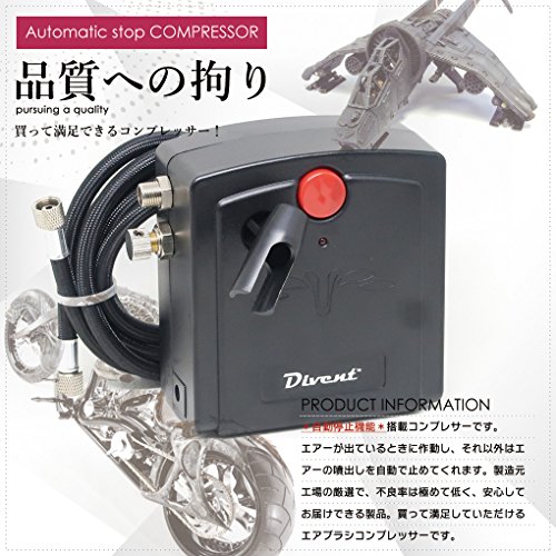 Divent エアブラシ コンプレッサー (コンプレッサー単体:自動停止搭載/黒)