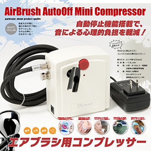 Divent エアブラシ コンプレッサー (コンプレッサー単体:自動停止搭載/白)