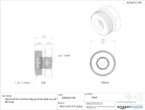 - Dixon Boss B8 Plated Steel Hose Fitting, Spud for Boss Washer Seal, 3/4 NPT Female