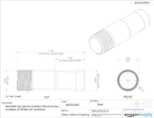 Dixon KRN641 King Unplated Steel Shank/Water Fitting for One Clamp, Round Nipple, 1/2 NPT Male x 3/4 Hose ID Barbed by Dixon Valve & Coupling