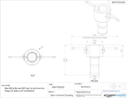 - Dixon 150-C-AL Aluminum 356T6 Type C Cam and Groove Hose Fitting, 1-1/2 Socket x 1-1/2 Hose ID Push-On