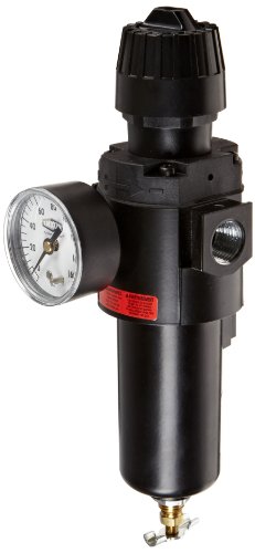 Wilkerson manual drain compact filter/regulator with metal bowl and sight glass;Over-under units are space savers and provide for installation in tight areas;Self-relieving standard;0-125 PSIG adjusting range;One common inlet/outlet for both filter and regulator saves on piping costs