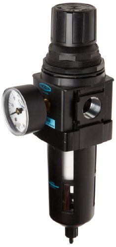 Wilkerson manual drain standard filter/regulator with transparent bowl and guard;Self-relieving standard;6oz Bowl capacity;0-125 PSIG adjusting range;5 Micron element