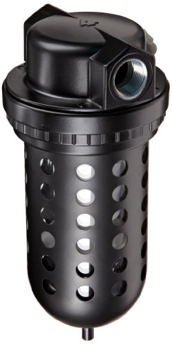 Wilkerson airline jumbo filter with transparent bowl and guard;Automatic drain;1qt Bowl capacity;5 Micron element;Maximum operating condition: 150 PSIG (10.3 bar) and 32 degree F to 125 degree F (0 degree C to 52 degree C)