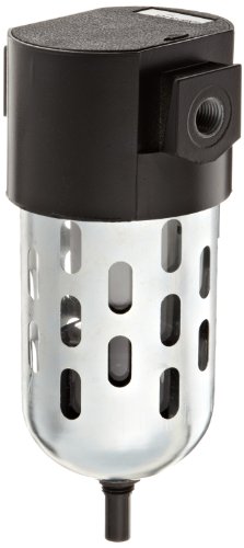 Wilkerson airline standard filter with transparent bowl and guard;Automatic drain;10oz Bowl capacity;5 Micron element;Maximum operating condition: 150 PSIG (10.3 bar) and 32 degree F to 125 degree F (0 degree C to 52 degree C)
