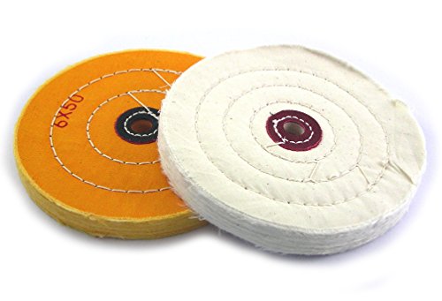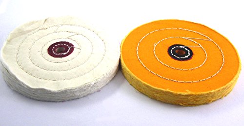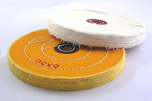 【DWT】 仕上 研磨 用 150 mm コットン 布 バフ ホイール 2 個 ( 黄 ・ 白 ) セット 作業 軍手 付属 A072