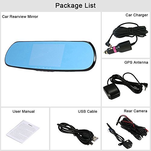 Standard information:Android 4.4.2, GPS,DVR,WIFI,FM,TF/USB,Anti glare,take photos,Video Rearview system