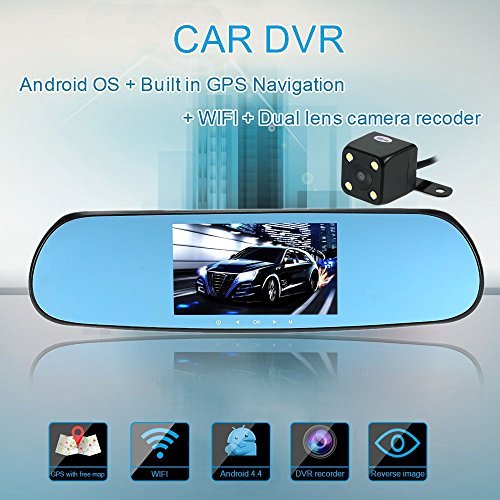 Android 5 Inches touch screen dual lens Car Camera Recorder with Built-in GPS Navigation + Free Backup Camera for Car Reversing or Parking Security. Support Wifi function.