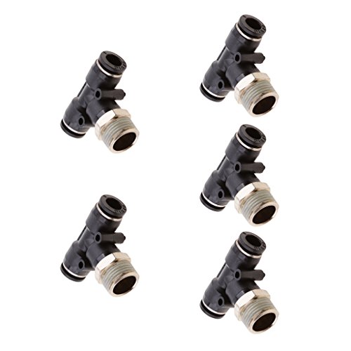 Dolity プラスチック 金属製 6mmチューブ 1/8インチスレッド DPB8-03 エアウォーターホースチューブ 空気圧継手 トリプルプッシュ コネクタ 5個パック