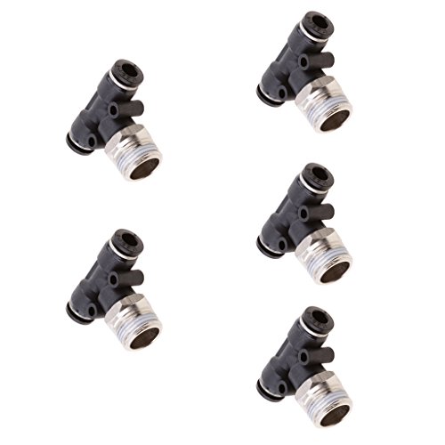 Dolity プラスチック 金属製 チューブ エアウォーターホースチューブ 空気圧継手 エルボープッシュ コネクタ 5個パック 5サイズ選択 - DPB6-03