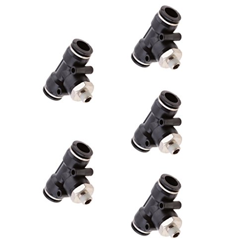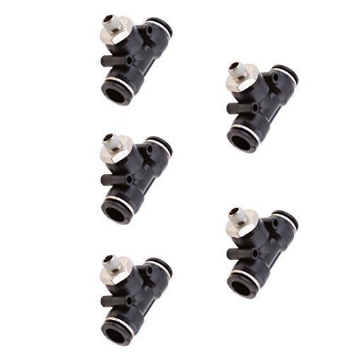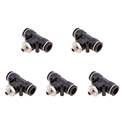 Dolity プラスチック 金属製 チューブ エアウォーターホースチューブ 空気圧継手 エルボープッシュ オススレッド コネクタ 5個パック 4サイズ選択 - DPB12-01