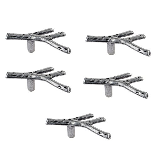 5個入り 取っ手 取手 ドア取っ手 木の枝型 取っ手ハンドル キッチン 食器棚 クローゼット 家具 引き出し プル ノブ ネジ付き シルバー