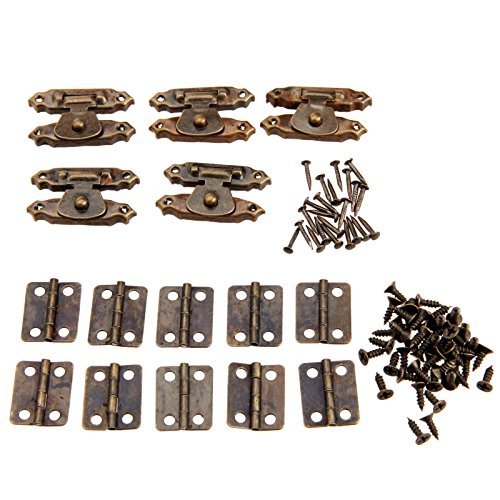 15個入りセット アンティーク調 ボックスバックル(5枚)&蝶番 ボックスのヒンジ(10枚) アンティークボックスラッチセット装飾 手芸 手作り パーツ 金具 ネジに付き