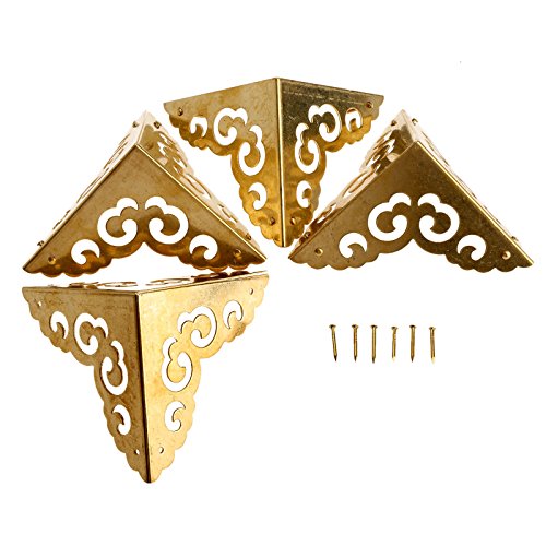 4個入り コーナープロテクター 金属 ブラケットプロテクター レトロスタイル 装飾 6.5*6.5*6.5cm(24ネジ付き) ブラス