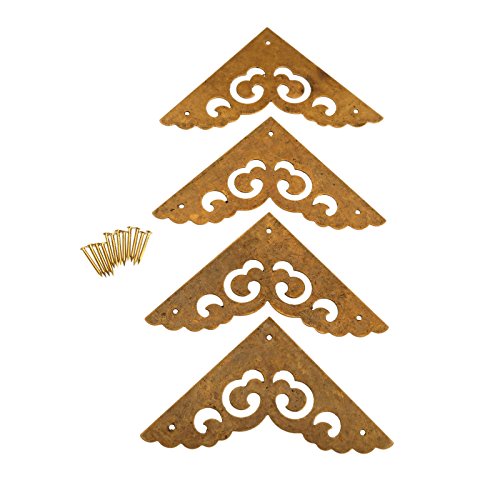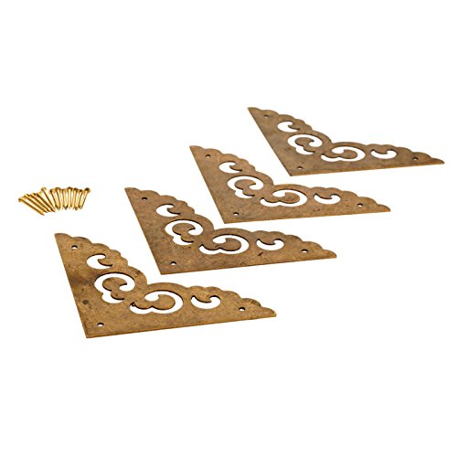4個入り 真鍮コーナーブラケット コーナープロテクター ボックスキャビネット装飾 家具ハードウェア(12ネジ付き) 6.5cm 古銅色