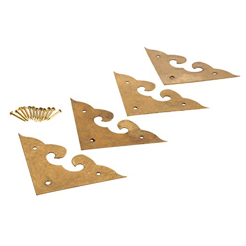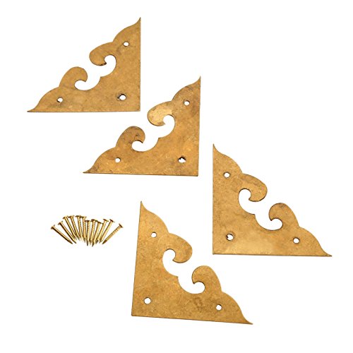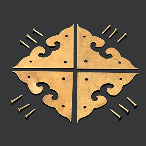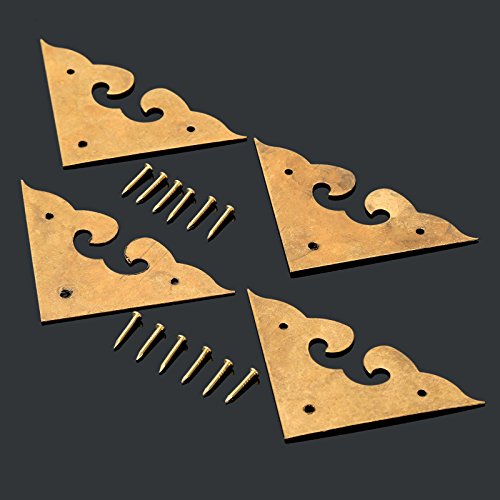 4個入り 真鍮コーナーブラケット コーナープロテクター ボックスキャビネット装飾 家具ハードウェア(12ネジ付き) 4.5cm 古銅色