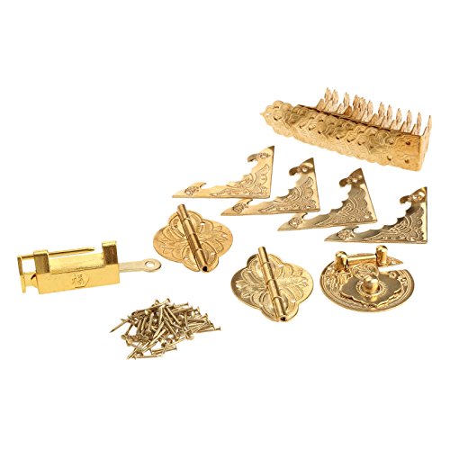木箱装飾セット 蝶番+コーナーブラケット+金属バックル ネジ付き 家具キャビネットハードウェア