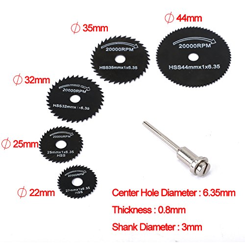 5枚入りセットスリッターブレード 鋸刃 高速度鋼切削ディスク HSS鋼 金属 切断鋸 木工用ブレード 砥石ソーブレード ブラック ミニルーター用 3.17mm軸