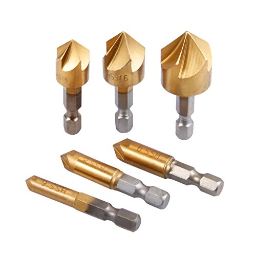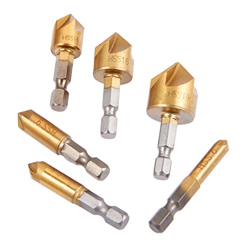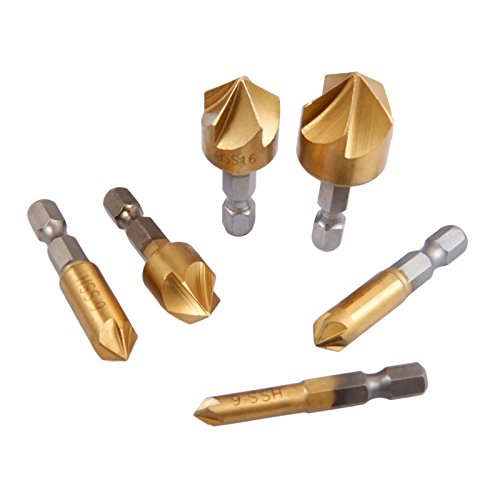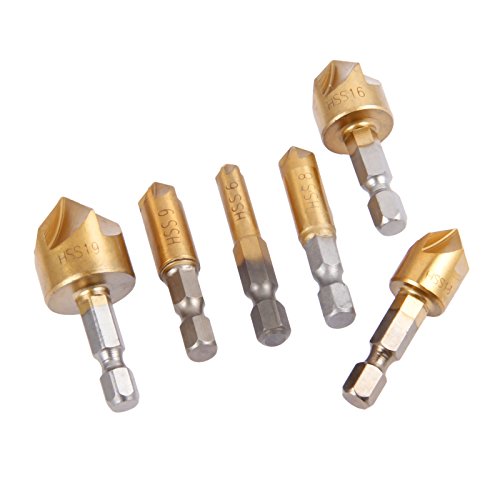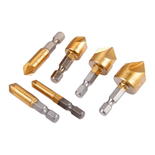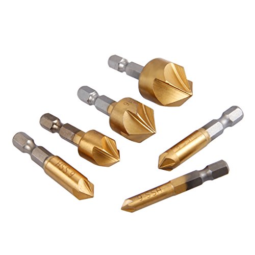 6本入り カウンターシンクドリルビット 面取り装置ドリルビット 6-19mm 木工用90度シングルフルート 6-19mmエッジの面取り