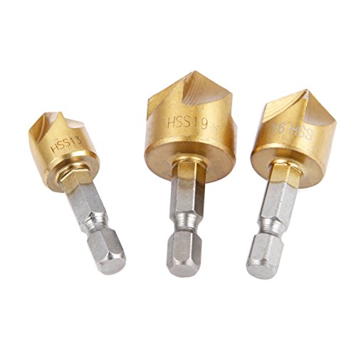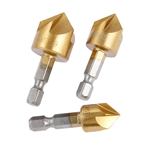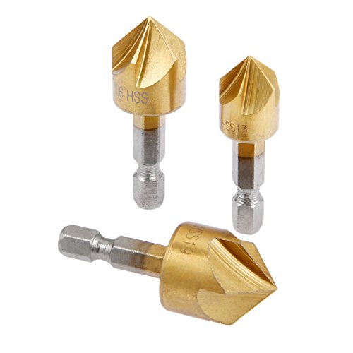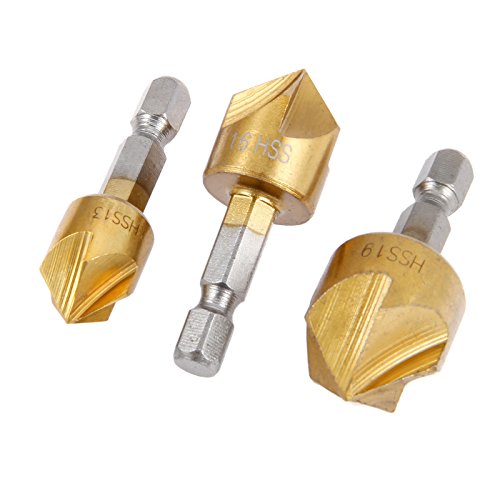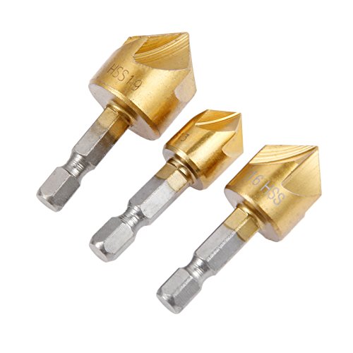 3本入り カウンターシンクドリルビット 面取り装置ドリルビット 木工用90度シングルフルート12/16/19mmエッジの面取り