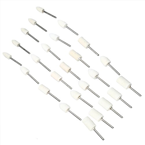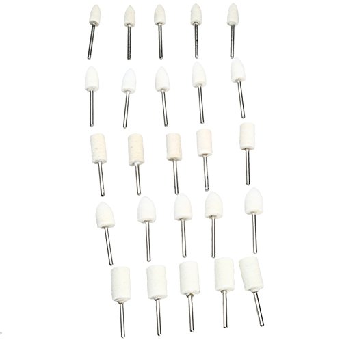 25個入り 羊毛フェルトホイール バフ研磨 金属磨き 3mm軸付き 砲弾型 円筒