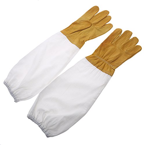 1ペア 防護グローブ 長袖 養蜂器具 養蜂用手袋 防護 羊皮 手袋 防刺 虫除け 草刈り ガーデニング イエロー XL